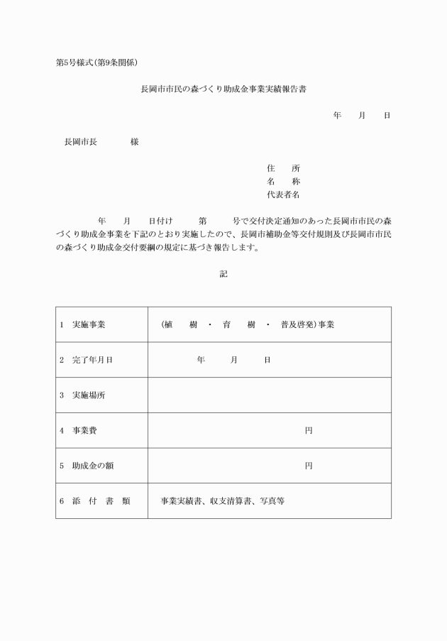 ○長岡市市民の森づくり助成金交付要綱