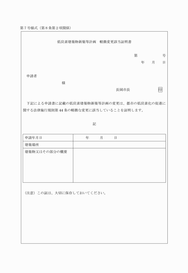 ○長岡市都市の低炭素化の促進に関する法律施行細則