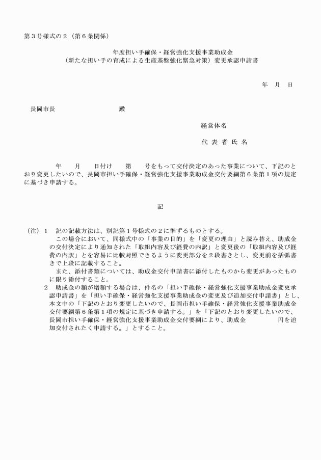 3 担い手確保・経営強化支援事業助成金変更承認申請書(第3号様式)