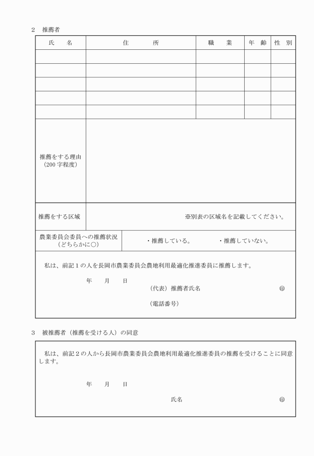 2 候補者の募集について、応募する者は別記第3号様式を持参又は郵送により農業委員会に提出するものとする。