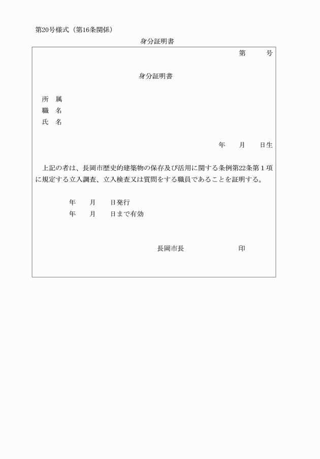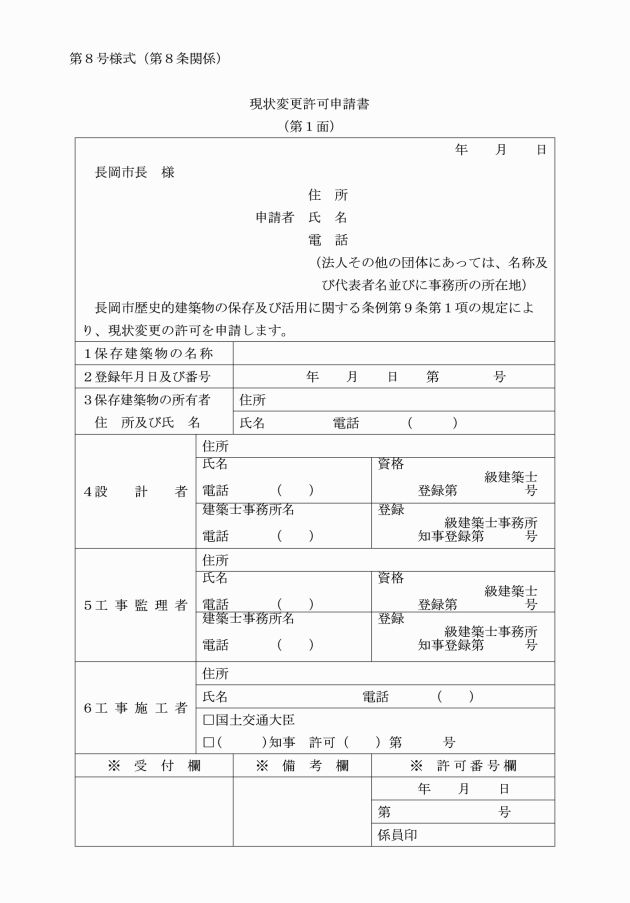 ○長岡市歴史的建築物の保存及び活用に関する条例施行規則