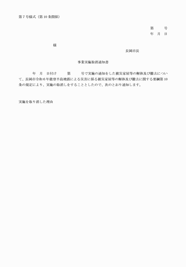 ○長岡市令和6年能登半島地震による災害に係る被災家屋等の解体及び撤去に関する要綱