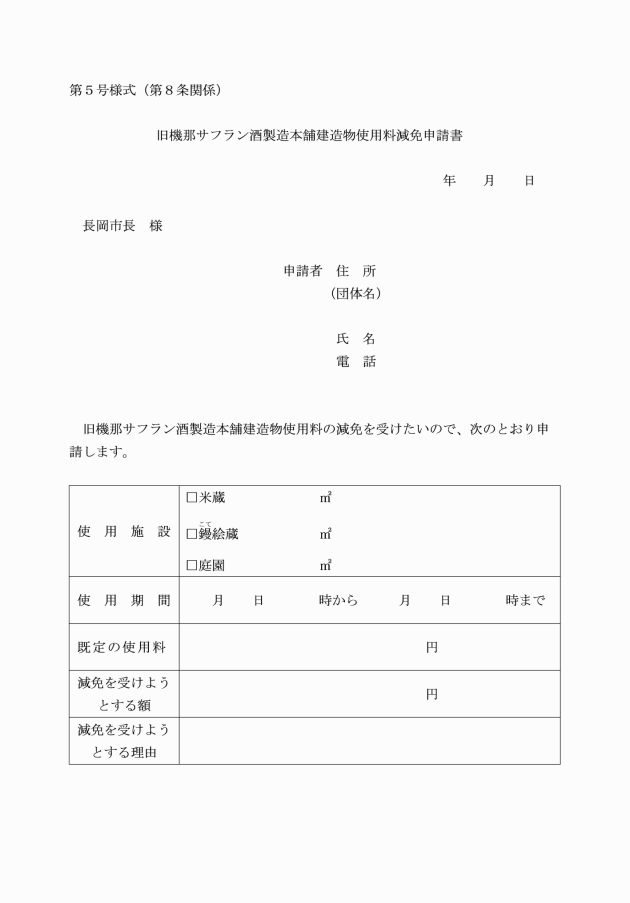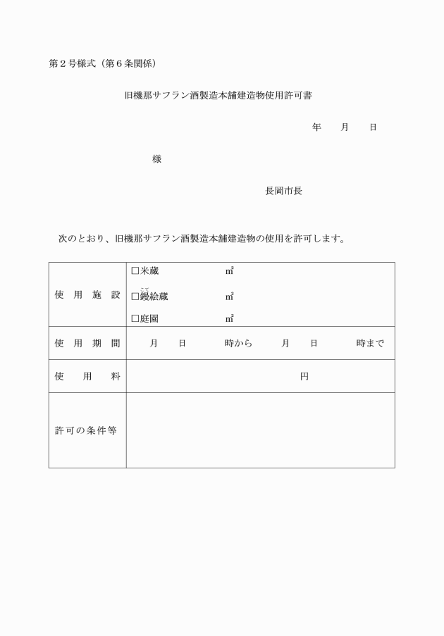 ○長岡市旧機那サフラン酒製造本舗建造物条例施行規則