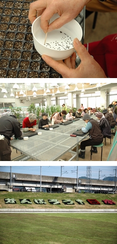 1月22日に、今年の花いっぱいフェア(5月下旬)で花文字を作るための、ナデシコのタネをまきました。花テラス・サポーター、NPO花いっぱい推進協議会と、一般の市民が参加しました。