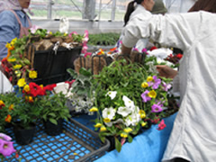 今回は「花を楽しむ会」の皆さんと、花テラス・サポーターの皆さんに作っていただきました。花いっぱいフェアでは色鮮やかなハンギングがご覧いただけると思います。