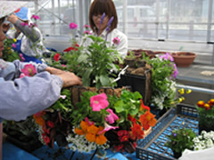 ![]() ▲④最後に上の部分にも花苗を入れます。 |