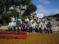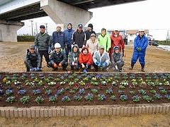 ![]() ▲手づくり公園花壇の完成 みんなで記念撮影 |