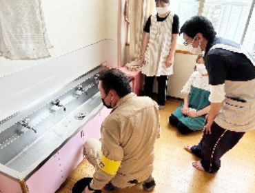 給水設備点検では、ちょうど保育園のお昼寝の時間に訪れたため、大きな音を立てて園児が起きないよう気を付けて作業していると、物音に気付き目を覚ました園児が横になったまま、興味深そうに小さな目を丸くして、作業する様子を目で追っていた姿が印象に残りました。